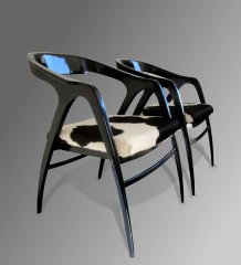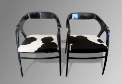 HOPPER - 2 Armlehnstühle, ebonisirtes Holz / Bezug - Kuhfell
